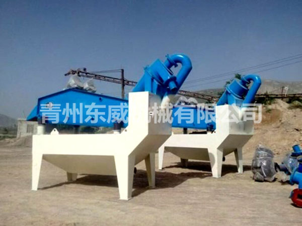 目前現(xiàn)有的洗沙生產(chǎn)線上,絕大部分采用濕法生產(chǎn)工藝,不論采用何種形式的洗砂機(jī),其缺點(diǎn)就是細(xì)沙流失嚴(yán)重,嚴(yán)重影響沙子的級(jí)配,造成級(jí)配不合理,細(xì)度模數(shù)偏粗,大大降低了機(jī)制砂的產(chǎn)品質(zhì)量。過(guò)多的細(xì)沙排放,還會(huì)造成環(huán)境污染。為解決上述問(wèn)題,青州東威機(jī)械技術(shù)部門(mén)潛心研發(fā)了細(xì)沙回收機(jī)(細(xì)砂回收機(jī)),該細(xì)沙回收系統(tǒng)吸收國(guó)外先進(jìn)技術(shù),結(jié)合本土砂粉實(shí)際情況而設(shè)計(jì)的細(xì)沙回收設(shè)備。細(xì)沙回收機(jī)廣泛應(yīng)用于洗沙場(chǎng)、砂石骨料加工系統(tǒng)、玻璃原材料加工系統(tǒng)、人工制沙生產(chǎn)線、選煤廠粗煤泥的回收以及環(huán)保工程(泥漿凈化)等,可有效解決細(xì)沙回收問(wèn)題。