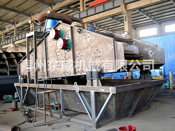 振動(dòng)脫水篩主要作用是脫水、脫泥、脫介,可用于砂石料廠水洗砂、選煤廠煤泥回收、選礦廠尾礦干排等,因此也叫砂石脫水篩、礦用脫水篩、煤泥脫水篩、尾礦脫水篩等。振動(dòng)脫水篩主要由篩箱、激振器、支承系統(tǒng)及電機(jī)組成;采用雙振動(dòng)電機(jī)或激振器(由兩臺(tái)普通電機(jī)外拖動(dòng)做反方向自同步旋轉(zhuǎn))驅(qū)動(dòng),使篩體沿直線方向做周期性往復(fù)直線運(yùn)動(dòng)以達(dá)到分級(jí)脫水目的。