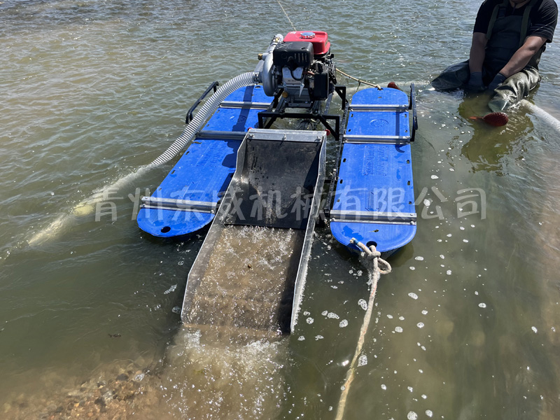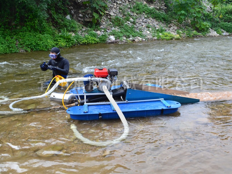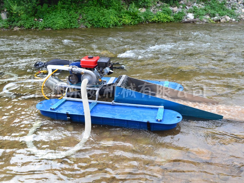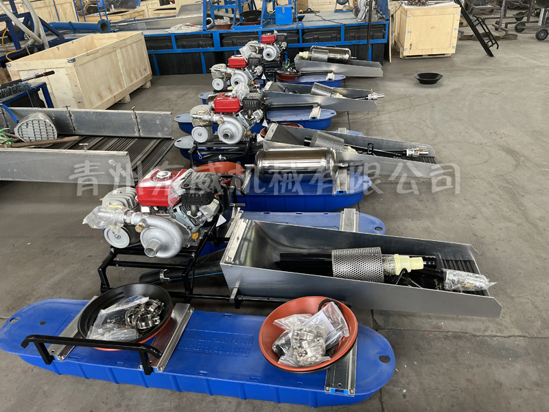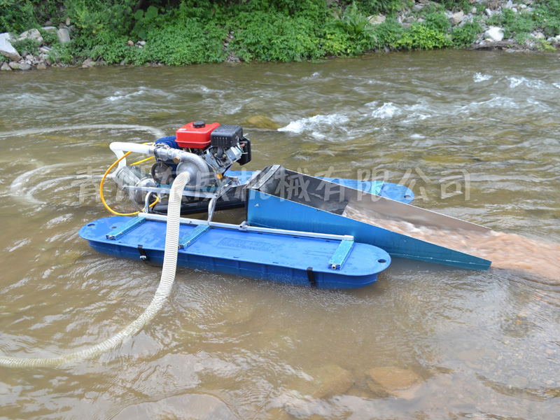 該設(shè)備抽沙系統(tǒng)采用新型結(jié)構(gòu),原料抽取過程中物料不流經(jīng)泵組,不用考慮泵和葉輪的磨損;沙金重選裝置為我公司專門研發(fā)的橡膠選金墊,沙金提取效率高,可對毛細金、片狀金進行回收;適用于中小型礦場、河道、小溪淘金、探礦作業(yè);