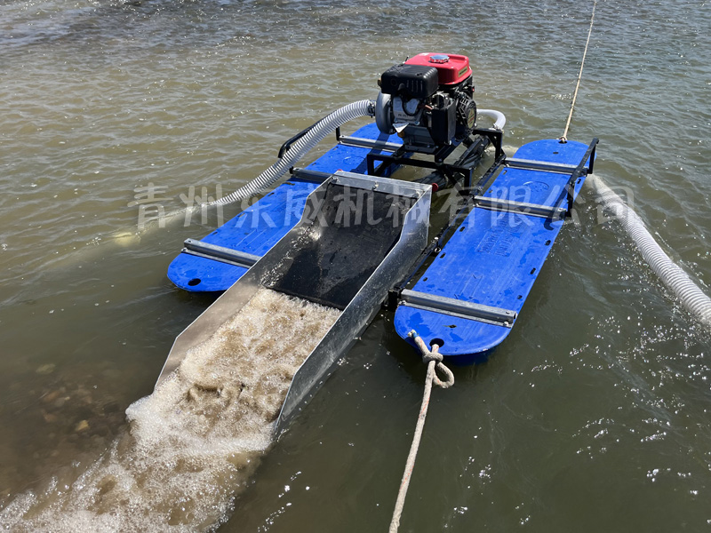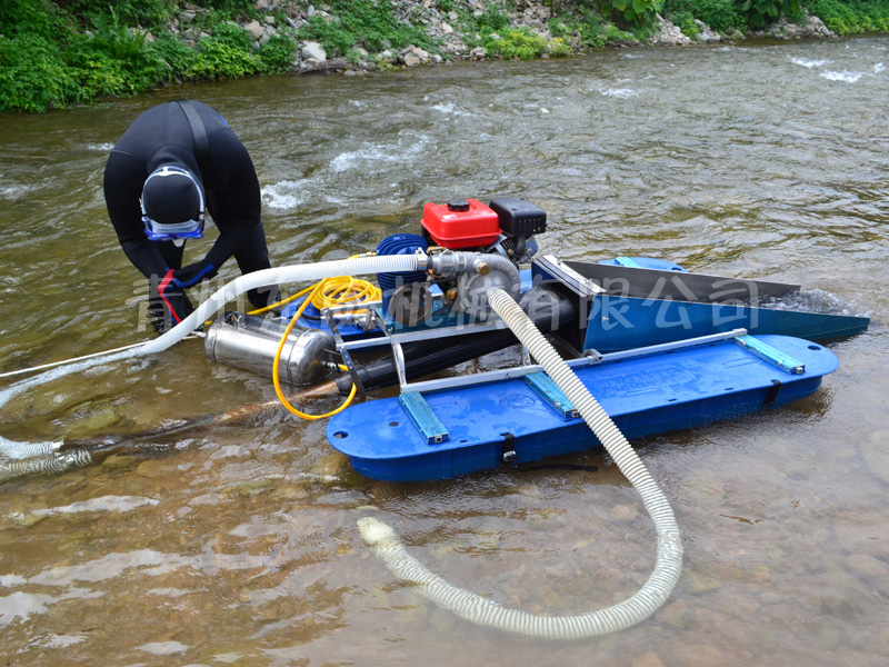 虹吸式淘金船是由機器、高壓水泵、浮體、射流嘴、管路、選礦溜槽等構(gòu)成,具有體積小、輕量化、便于拆裝運輸?shù)忍攸c,是沙金采選行業(yè)內(nèi)投資少、見效快的新選擇;可選裝空壓機系統(tǒng),潛入水下進行探礦、選礦操作。