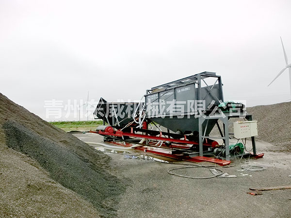 物料首先由裝載機(jī)上料至料倉,通過料倉底部的給料機(jī)給料到水洗滾筒內(nèi),物料進(jìn)入滾筒后經(jīng)滾動(dòng)、摩擦沖洗,雜質(zhì)及污水由廢水口流出,成品料經(jīng)滾筒清洗后,輸送機(jī)輸送至料堆。