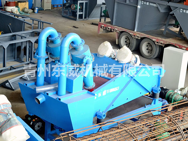 目前現(xiàn)有的洗沙生產(chǎn)線上,絕大部分采用濕法生產(chǎn)工藝,不論采用何種形式的洗砂機(jī),其大的缺點(diǎn)就是細(xì)沙流失嚴(yán)重,嚴(yán)重影響沙子的級(jí)配,造成級(jí)配不合理,細(xì)度模數(shù)偏粗,大大降低了機(jī)制砂的產(chǎn)品質(zhì)量。過(guò)多的細(xì)沙排放,還會(huì)造成環(huán)境污染。為解決上述問(wèn)題,青州東威機(jī)械技術(shù)部門潛心研發(fā)了細(xì)沙回收機(jī)(細(xì)砂回收機(jī)),該細(xì)沙回收系統(tǒng)吸收國(guó)外先進(jìn)技術(shù),結(jié)合本土砂粉實(shí)際情況而設(shè)計(jì)的細(xì)沙回收設(shè)備。細(xì)沙回收機(jī)廣泛應(yīng)用于洗沙場(chǎng)、砂石骨料加工系統(tǒng)、玻璃原材料加工系統(tǒng)、人工制沙生產(chǎn)線、選煤廠粗煤泥的回收以及環(huán)保工程(泥漿凈化)等,可有效解決細(xì)沙回收問(wèn)題。