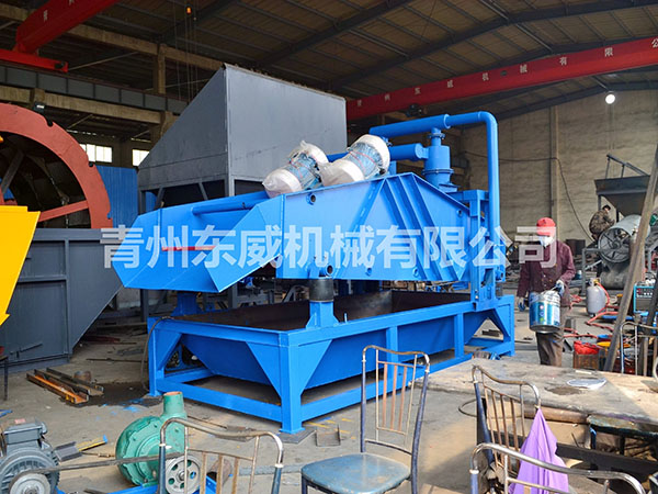 2、工作流程:洗砂機(jī)的成品物料直接進(jìn)入脫水篩進(jìn)行脫水,洗砂機(jī)排出的泥漿水則進(jìn)入該設(shè)備集水箱,經(jīng)由底部離心高壓抽沙泵抽至泥沙分離器進(jìn)行分級(jí)濃縮,細(xì)沙經(jīng)沉沙嘴進(jìn)入脫水篩,其他廢水、泥、粉、雜質(zhì)等通過泥沙分離器溢流口進(jìn)入回水管路排出。